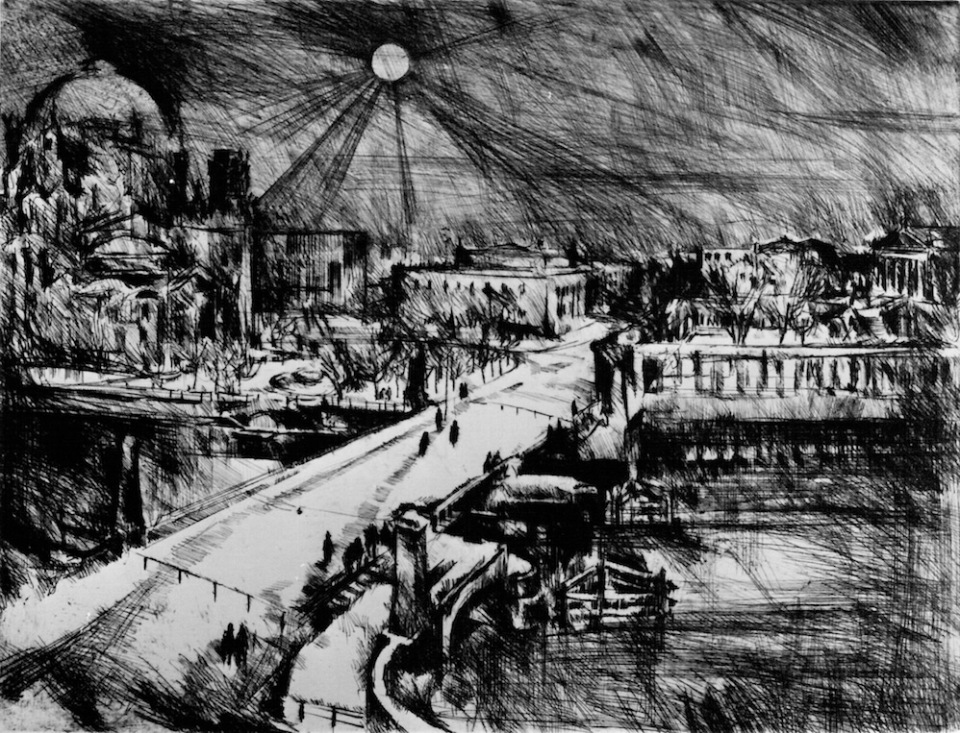 G. Richter WV II-032 Brücke im Schnee II, 1972, Kaltnadel, 29,5 x 39 cm ← Zurück Weiter → WV II-032 Brücke im Schnee II, 1972