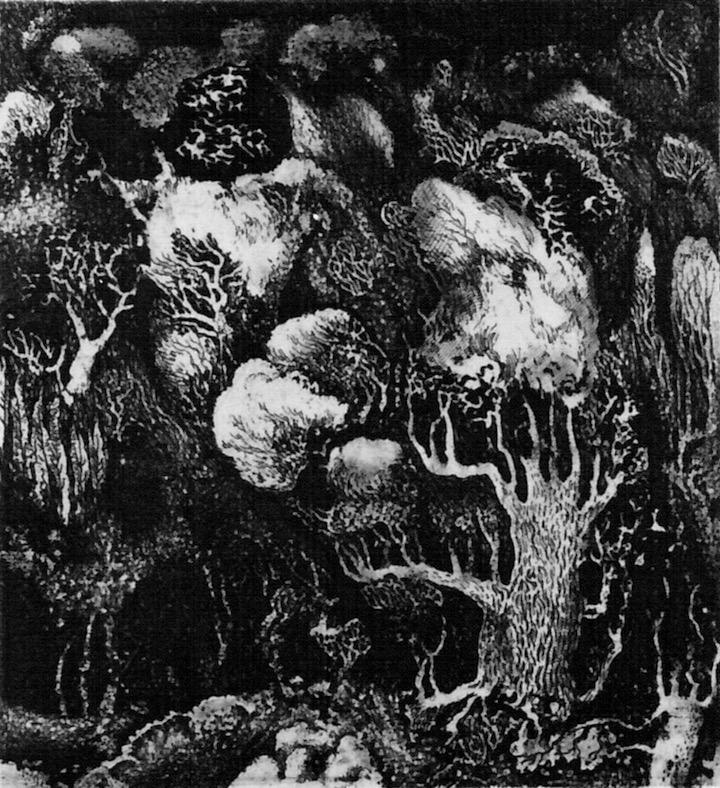 G. Richter WV II-146 Wald, 1981, Flächen- und Strichätzung, 7 x 6,5 cm ← Zurück Weiter → WV II-146 Wald, 1981