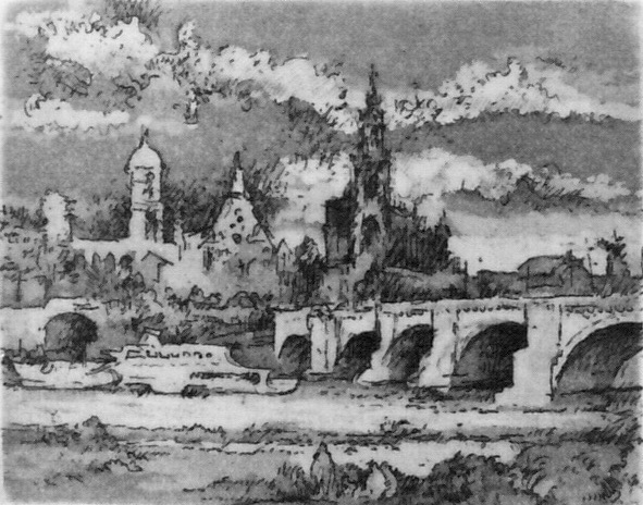 G. Richter WV II-220 Dresden (Elbbrücke mit Katholischer Hofkirche), 1985, Radierung und Aquatinta, 4 x 5 cm ← Zurück Weiter → II-220 Dresden, 1985