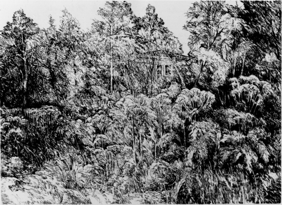 G. Richter WV II-291 Villa im Bärenklau, 1988, Kaltnadel, 16 x 22 cm ← Zurück Weiter → II-291 Villa im Bärenklau, 1988